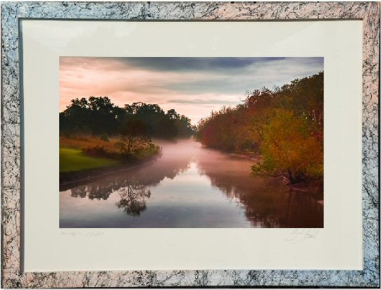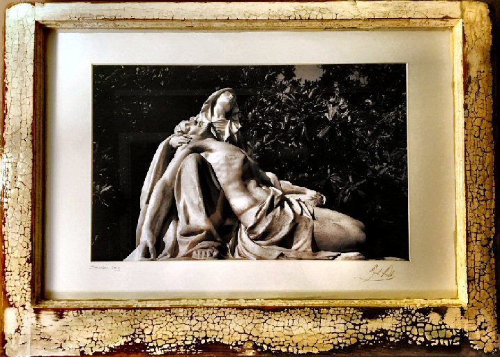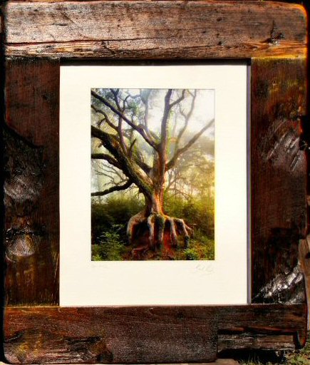 | I approach framing as seriously as I do photography, I once paid to have work framed nearly 20 years ago and decided going forward I'd do it myself. I favor a rustic appearance but also make frames from pre-cut moulding profiles where I apply various marble and cracked paint treatments. When I want to enlarge beyond sizes that make glass and matting impractical, I'll make a floater frame and sometimes apply clear latex directly to the photo for an extensive painting effect. See a few examples below which can be seen and purchased through Bare Walls. |