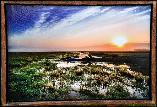 "Crawfish Pond Sunset", 19" x 25" x 2", Painted Pre-Fabricated Moulding |