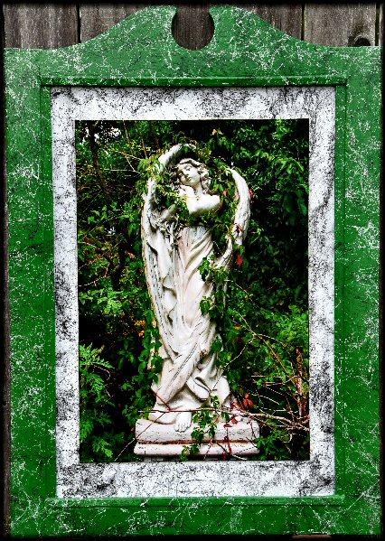 "Forest Angel", 42.75" x 30" x 1.25", Repurposed Antique Mirror Frame |